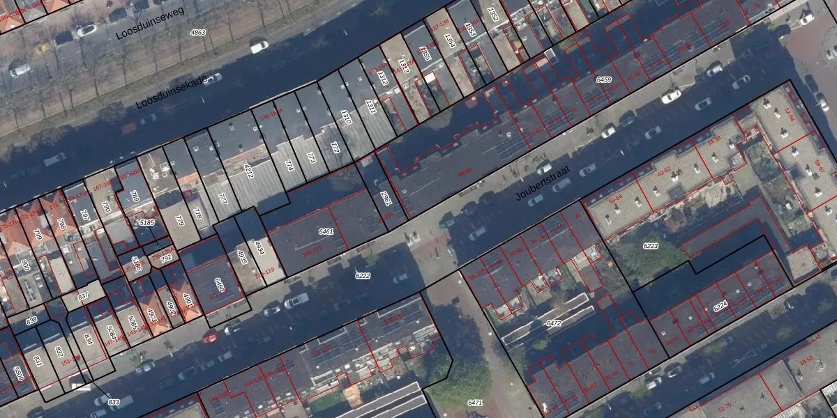 Joubertstraat 89 is gelegen op kadastraal perceel GVH19AB6459. Deze kadastrale aanduiding is uniek en wordt gebruikt door het Kadaster om eigendomsrechten en andere zakelijke rechten vast te leggen. Het perceel maakt onderdeel uit van de kadastrale gemeente 's-Gravenhage.