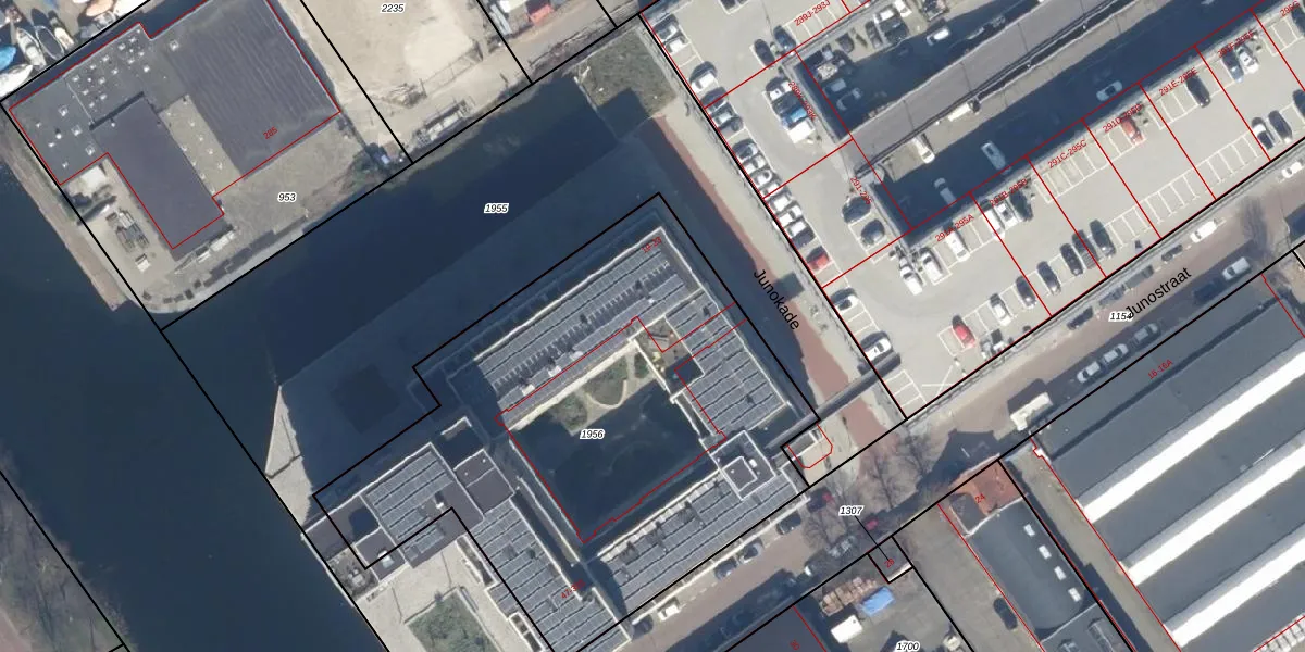 Het perceel waarop Junostraat 199 staat heeft een oppervlakte van 2815 m². Dit is een zeer groot perceel. De perceeloppervlakte wordt geregistreerd door het Kadaster. Gedetailleerde informatie over de maten van dit perceel kunt u vinden in het rapport Kadastrale kaart met maatvoering van Junostraat 199.