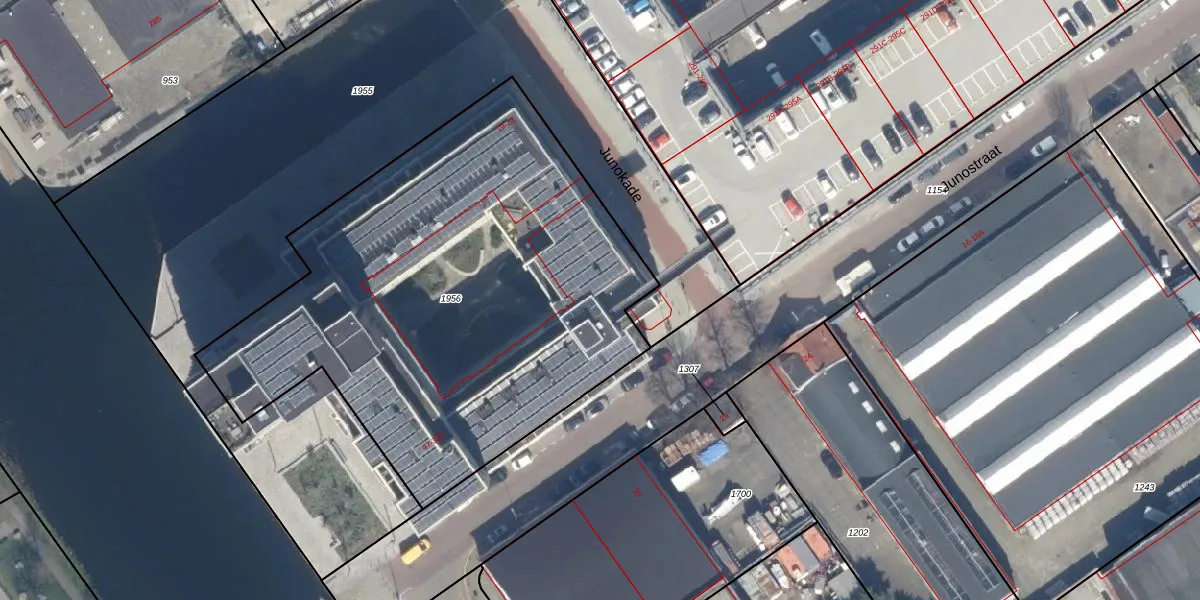 Het perceel waarop Junostraat 47 staat heeft een oppervlakte van 2815 m². Dit is een zeer groot perceel. De perceeloppervlakte wordt geregistreerd door het Kadaster. Gedetailleerde informatie over de maten van dit perceel kunt u vinden in het rapport Kadastrale kaart met maatvoering van Junostraat 47.