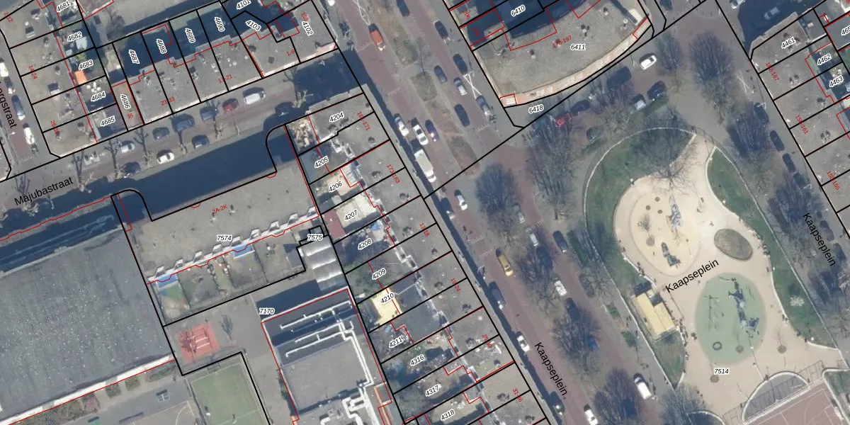 Het perceel waarop Kaapseplein 13 staat heeft een oppervlakte van 182 m². Dit is een middelgroot perceel. De perceeloppervlakte wordt geregistreerd door het Kadaster. Gedetailleerde informatie over de maten van dit perceel kunt u vinden in het rapport Kadastrale kaart met maatvoering van Kaapseplein 13.