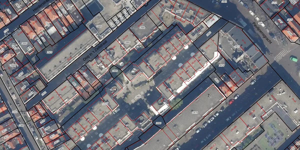 Katerstraat 41 is gelegen op kadastraal perceel GVH06I2891. Deze kadastrale aanduiding is uniek en wordt gebruikt door het Kadaster om eigendomsrechten en andere zakelijke rechten vast te leggen. Het perceel maakt onderdeel uit van de kadastrale gemeente 's-Gravenhage.