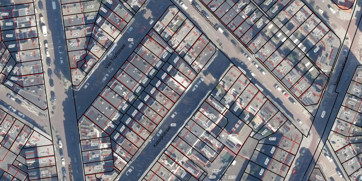 Het perceel waarop Katwijkstraat 76 staat heeft een oppervlakte van 92 m². Dit is een klein perceel. De perceeloppervlakte wordt geregistreerd door het Kadaster. Gedetailleerde informatie over de maten van dit perceel kunt u vinden in het rapport Kadastrale kaart met maatvoering van Katwijkstraat 76.