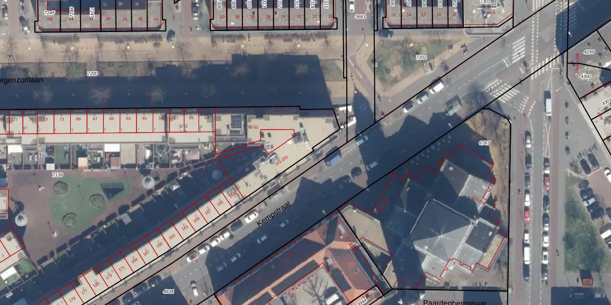 Kempstraat 143 is gelegen op kadastraal perceel GVH19AB7139. Deze kadastrale aanduiding is uniek en wordt gebruikt door het Kadaster om eigendomsrechten en andere zakelijke rechten vast te leggen. Het perceel maakt onderdeel uit van de kadastrale gemeente 's-Gravenhage.