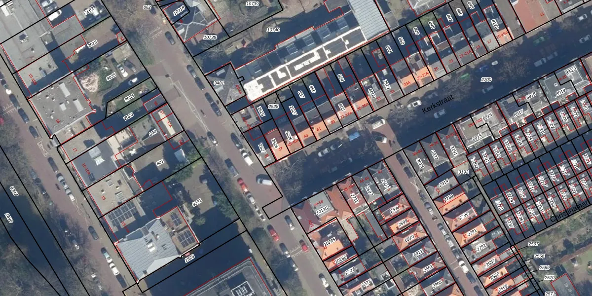 Het perceel waarop Kerkstraat 45-A staat heeft een oppervlakte van 104 m². Dit is een middelgroot perceel. De perceeloppervlakte wordt geregistreerd door het Kadaster. Gedetailleerde informatie over de maten van dit perceel kunt u vinden in het rapport Kadastrale kaart met maatvoering van Kerkstraat 45-A.