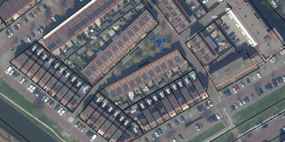 Het perceel waarop Kievhof 16 staat heeft een oppervlakte van 1173 m². Dit is een zeer groot perceel. De perceeloppervlakte wordt geregistreerd door het Kadaster. Gedetailleerde informatie over de maten van dit perceel kunt u vinden in het rapport Kadastrale kaart met maatvoering van Kievhof 16.