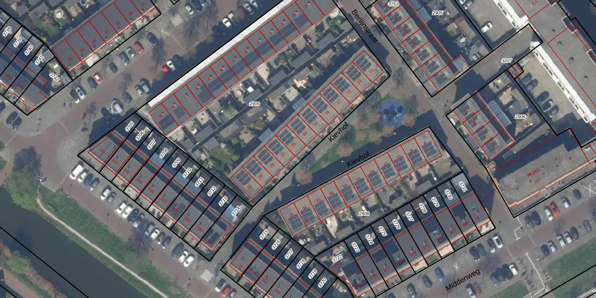 Het perceel waarop Kievhof 25 staat heeft een oppervlakte van 3193 m². Dit is een zeer groot perceel. De perceeloppervlakte wordt geregistreerd door het Kadaster. Gedetailleerde informatie over de maten van dit perceel kunt u vinden in het rapport Kadastrale kaart met maatvoering van Kievhof 25.