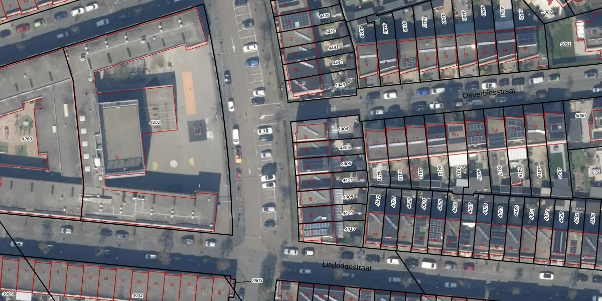 Gebruik de zoekbalk of klik op een perceel voor informatie over de adressen binnen dit perceel.