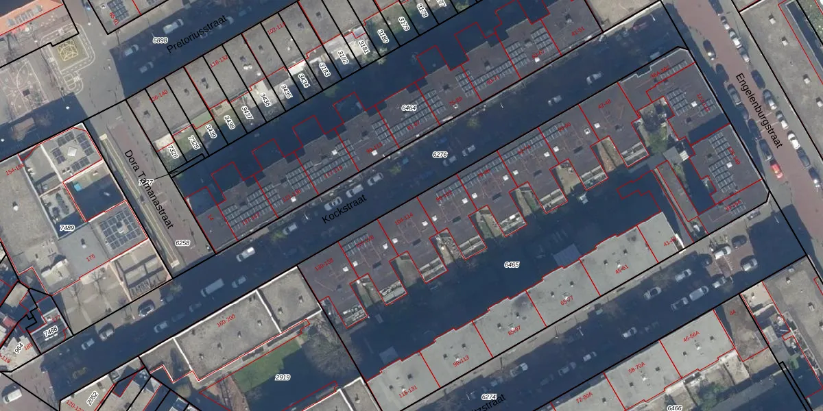 Het perceel waarop Kockstraat 108 staat heeft een oppervlakte van 4717 m². Dit is een zeer groot perceel. De perceeloppervlakte wordt geregistreerd door het Kadaster. Gedetailleerde informatie over de maten van dit perceel kunt u vinden in het rapport Kadastrale kaart met maatvoering van Kockstraat 108.
