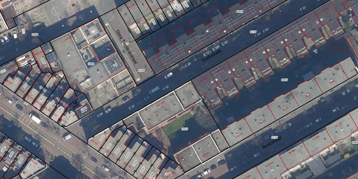 Het perceel waarop Kockstraat 178 staat heeft een oppervlakte van 1602 m². Dit is een zeer groot perceel. De perceeloppervlakte wordt geregistreerd door het Kadaster. Gedetailleerde informatie over de maten van dit perceel kunt u vinden in het rapport Kadastrale kaart met maatvoering van Kockstraat 178.