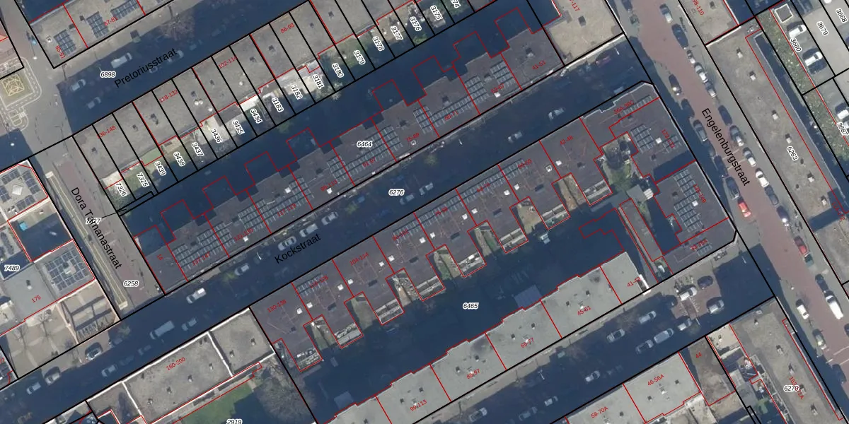 Het perceel waarop Kockstraat 88 staat heeft een oppervlakte van 4717 m². Dit is een zeer groot perceel. De perceeloppervlakte wordt geregistreerd door het Kadaster. Gedetailleerde informatie over de maten van dit perceel kunt u vinden in het rapport Kadastrale kaart met maatvoering van Kockstraat 88.