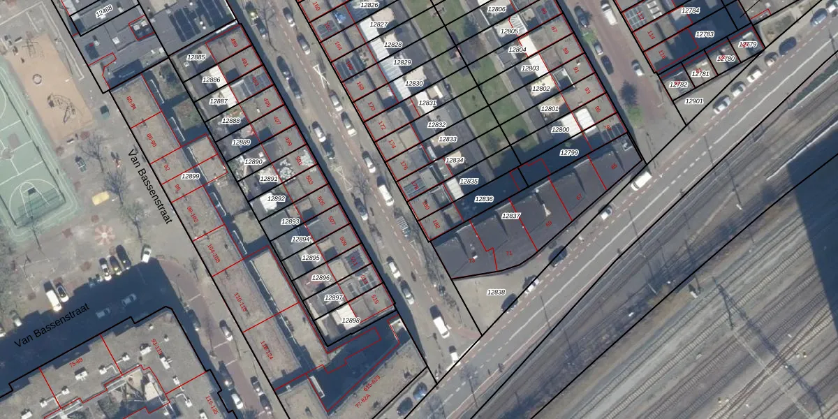 Het perceel waarop het adres ligt is GVH08-L-12835. De afkorting 'GVH08' staat voor kadastrale gemeente 's-Gravenhage. De gemiddelde perceelgrootte in 's-Gravenhage is 468,2 m². Dit perceel is kleiner: de perceeloppervlakte bedraagt 150 m². Het kleinste perceel in de kadastrale gemeente is 0 m² groot. De grootste perceeloppervlakte is 3,8 ha. Op het perceel bevinden zich geen andere adressen. De laatste wijziging in het de Basisregistratie Kadaster (BRK) was op 16-01-2004.