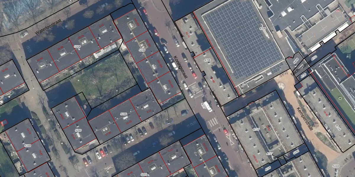 Het perceel waarop Koningstraat 309 staat heeft een oppervlakte van 1054 m². Dit is een zeer groot perceel. De perceeloppervlakte wordt geregistreerd door het Kadaster. Gedetailleerde informatie over de maten van dit perceel kunt u vinden in het rapport Kadastrale kaart met maatvoering van Koningstraat 309.