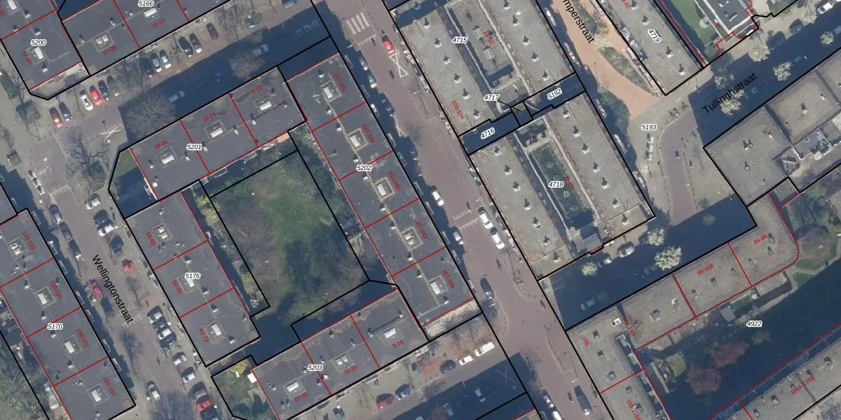 Het perceel waarop het adres ligt is GVH22-AE-5202. De afkorting 'GVH22' staat voor kadastrale gemeente 's-Gravenhage. De gemiddelde perceeloppervlakte in de kadastrale gemeente 's-Gravenhage is 493,72 m². Dit perceel is met zijn 1322 m² dus groter dan gemiddeld. Het kleinste perceel in de kadastrale gemeente is 1 m² groot. De grootste perceeloppervlakte is 9,7 ha. Op het perceel liggen in totaal 37 adressen. De laatste wijziging in het de Basisregistratie Kadaster (BRK) was op 17-01-2005.