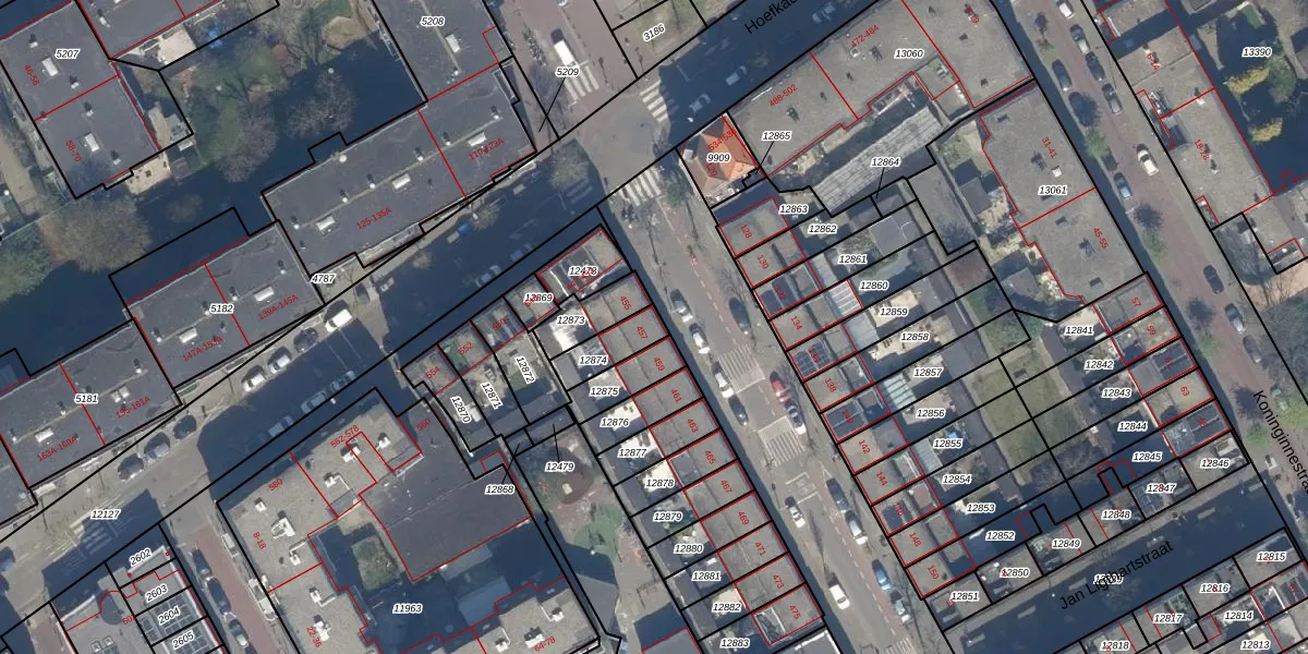 Het perceel waarop Koningstraat 457 staat heeft een oppervlakte van 97 m². Dit is een klein perceel. De perceeloppervlakte wordt geregistreerd door het Kadaster. Gedetailleerde informatie over de maten van dit perceel kunt u vinden in het rapport Kadastrale kaart met maatvoering van Koningstraat 457.