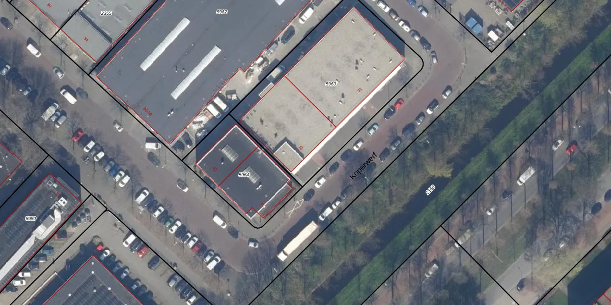Het perceel waarop Koperwerf 33 staat heeft een oppervlakte van 1935 m². Dit is een zeer groot perceel. De perceeloppervlakte wordt geregistreerd door het Kadaster. Gedetailleerde informatie over de maten van dit perceel kunt u vinden in het rapport Kadastrale kaart met maatvoering van Koperwerf 33.