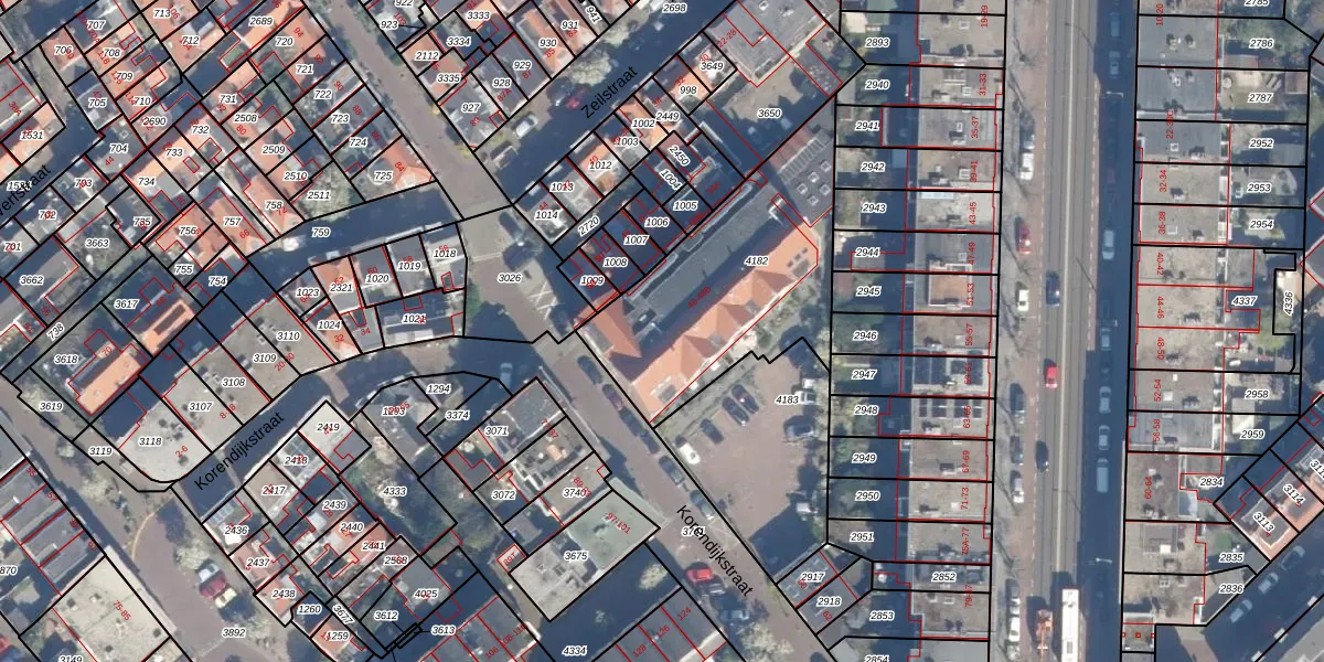 Korendijkstraat 44 is gelegen op kadastraal perceel GVH23AF4182. Deze kadastrale aanduiding is uniek en wordt gebruikt door het Kadaster om eigendomsrechten en andere zakelijke rechten vast te leggen. Het perceel maakt onderdeel uit van de kadastrale gemeente 's-Gravenhage.