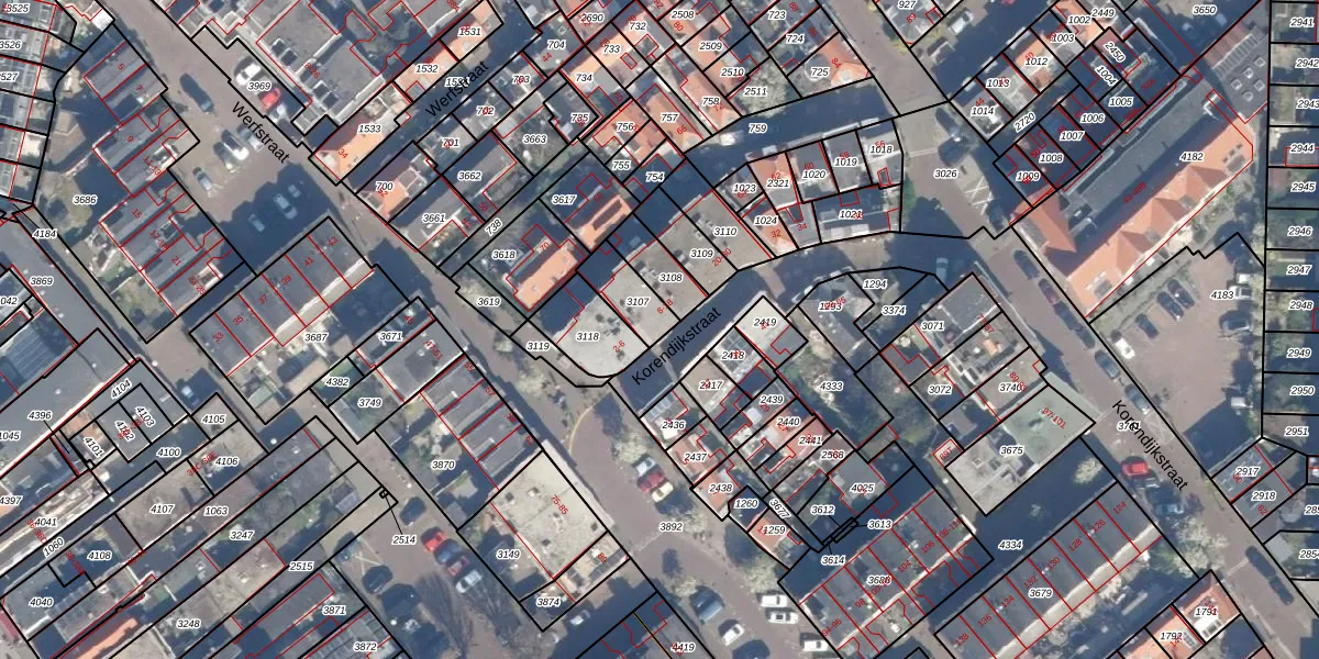 Korendijkstraat 8 is gelegen op kadastraal perceel GVH23AF3107. Deze kadastrale aanduiding is uniek en wordt gebruikt door het Kadaster om eigendomsrechten en andere zakelijke rechten vast te leggen. Het perceel maakt onderdeel uit van de kadastrale gemeente 's-Gravenhage.