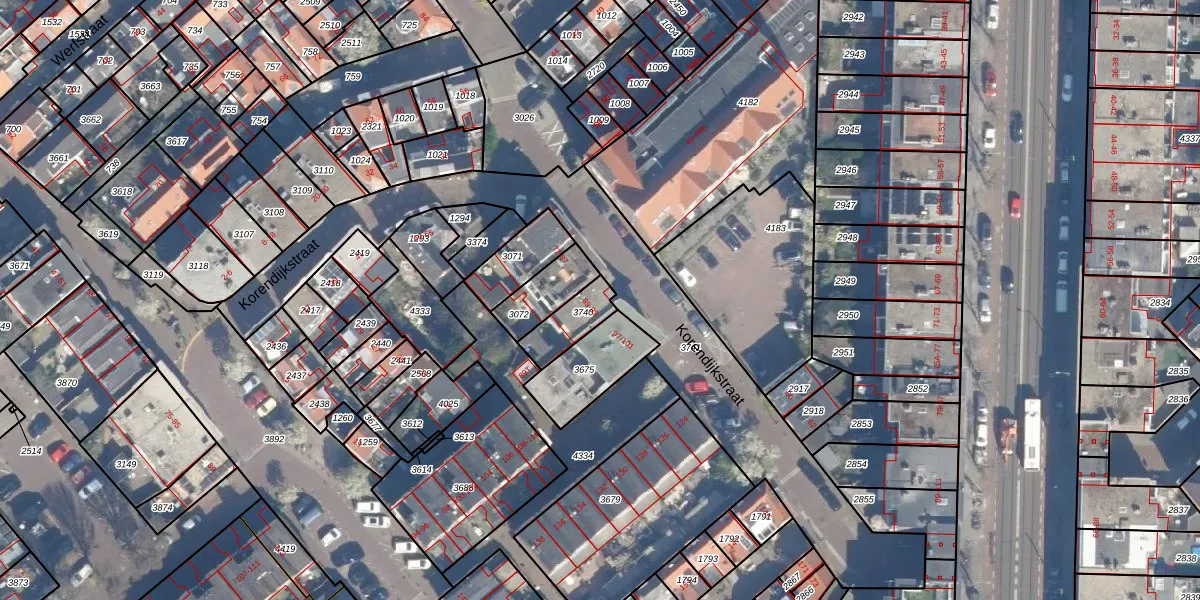 Korendijkstraat 91 is gelegen op kadastraal perceel GVH23AF3740. Deze kadastrale aanduiding is uniek en wordt gebruikt door het Kadaster om eigendomsrechten en andere zakelijke rechten vast te leggen. Het perceel maakt onderdeel uit van de kadastrale gemeente 's-Gravenhage.