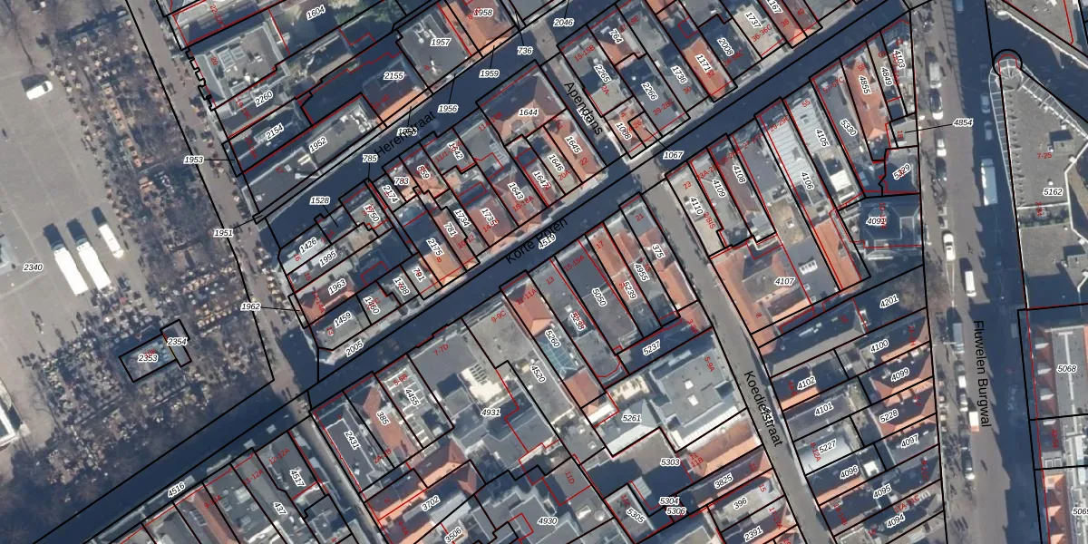 Het perceel waarop Korte Poten 13 staat heeft een oppervlakte van 165 m². Dit is een middelgroot perceel. De perceeloppervlakte wordt geregistreerd door het Kadaster. Gedetailleerde informatie over de maten van dit perceel kunt u vinden in het rapport Kadastrale kaart met maatvoering van Korte Poten 13.