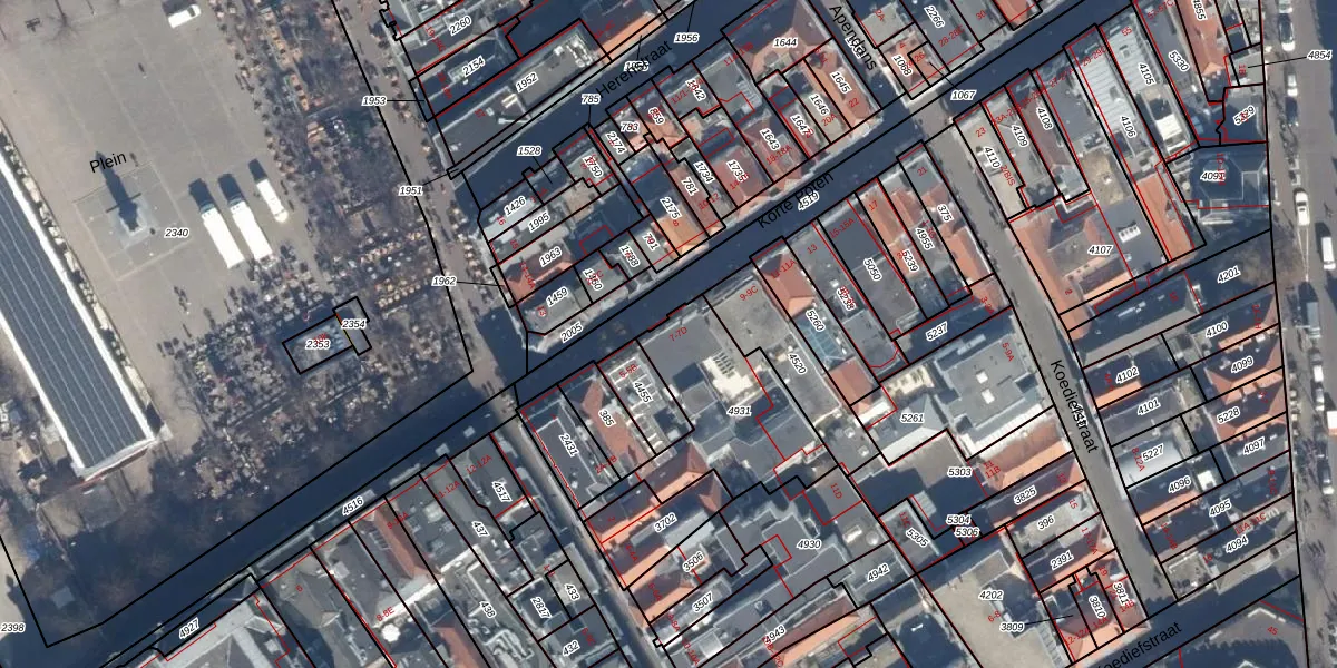 Het perceel waarop Korte Poten 7-D staat heeft een oppervlakte van 511 m². Dit is een groot perceel. De perceeloppervlakte wordt geregistreerd door het Kadaster. Gedetailleerde informatie over de maten van dit perceel kunt u vinden in het rapport Kadastrale kaart met maatvoering van Korte Poten 7-D.