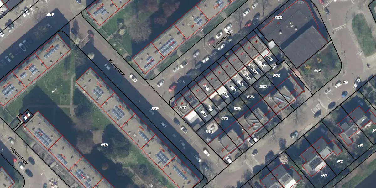 Gebruik de zoekbalk of klik op een perceel voor informatie over de adressen binnen dit perceel.