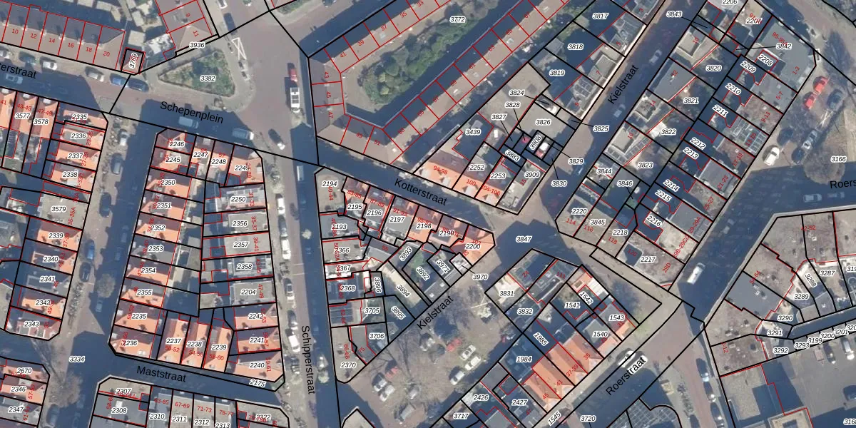 Het perceel waarop Kotterstraat 95 staat heeft een oppervlakte van 50 m². Dit is een klein perceel. De perceeloppervlakte wordt geregistreerd door het Kadaster. Gedetailleerde informatie over de maten van dit perceel kunt u vinden in het rapport Kadastrale kaart met maatvoering van Kotterstraat 95.