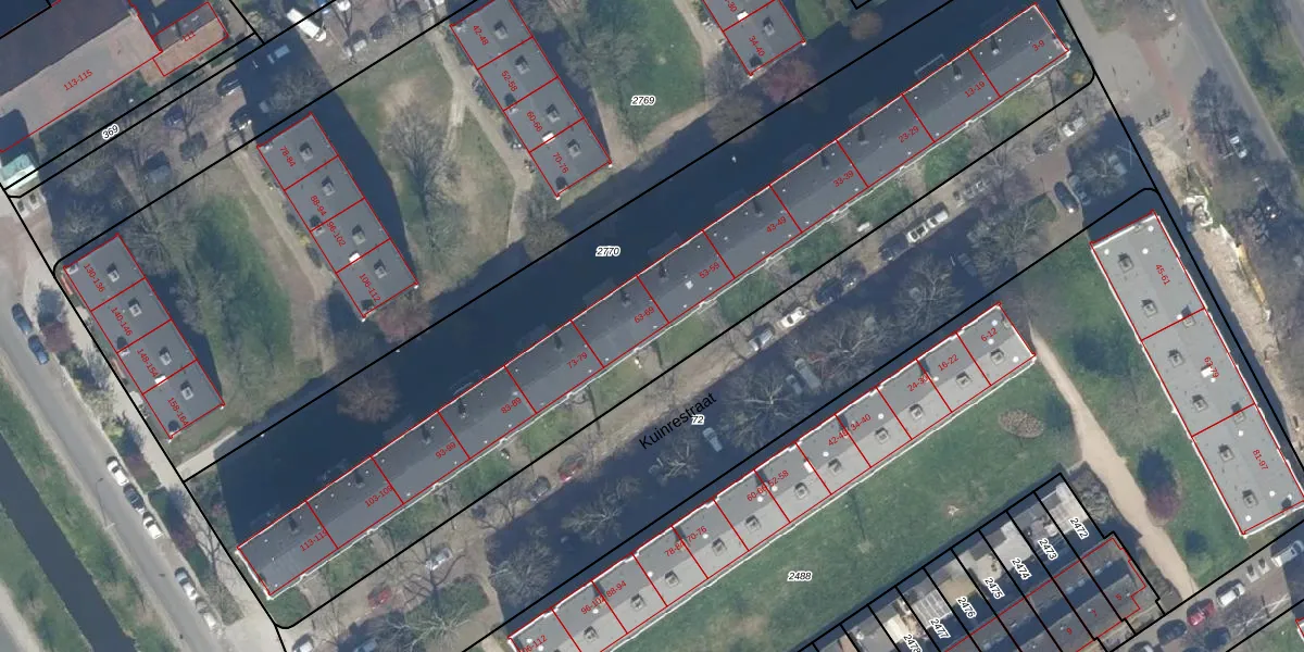 Het perceel waarop Kuinrestraat 63 staat heeft een oppervlakte van 3800 m². Dit is een zeer groot perceel. De perceeloppervlakte wordt geregistreerd door het Kadaster. Gedetailleerde informatie over de maten van dit perceel kunt u vinden in het rapport Kadastrale kaart met maatvoering van Kuinrestraat 63.