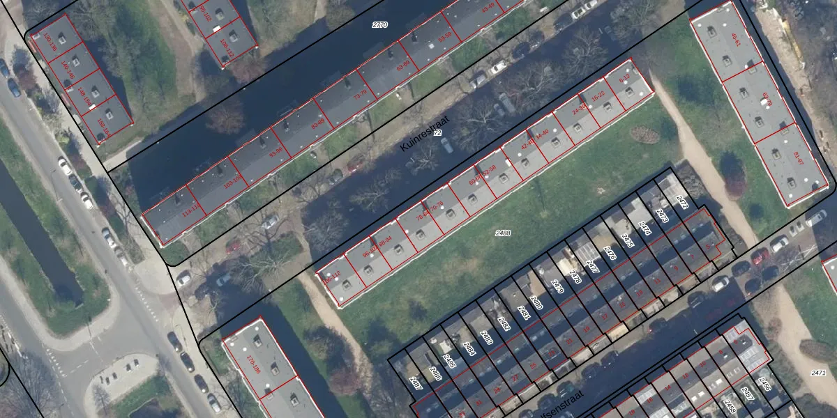 Het perceel waarop Kuinrestraat 80 staat heeft een oppervlakte van 6217 m². Dit is een zeer groot perceel. De perceeloppervlakte wordt geregistreerd door het Kadaster. Gedetailleerde informatie over de maten van dit perceel kunt u vinden in het rapport Kadastrale kaart met maatvoering van Kuinrestraat 80.