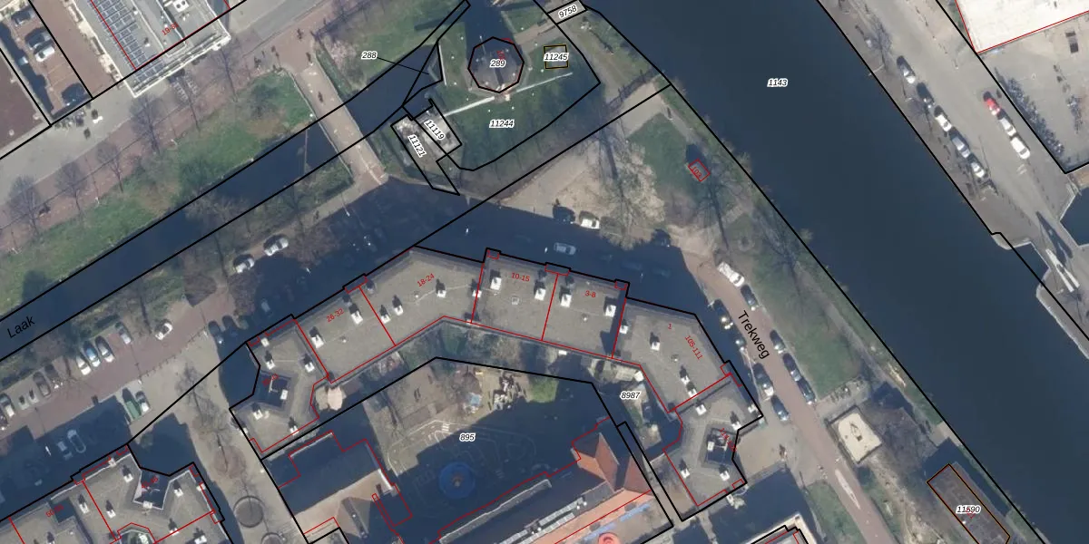 Het perceel waarop Laakkade 15 staat heeft een oppervlakte van 2169 m². Dit is een zeer groot perceel. De perceeloppervlakte wordt geregistreerd door het Kadaster. Gedetailleerde informatie over de maten van dit perceel kunt u vinden in het rapport Kadastrale kaart met maatvoering van Laakkade 15.
