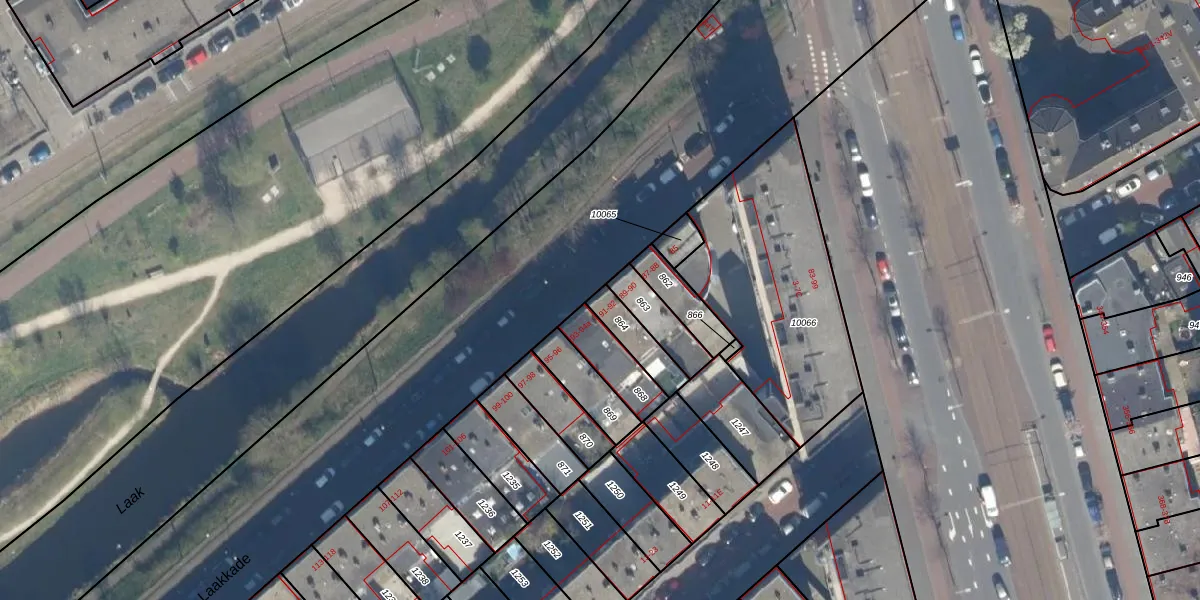 Het perceel waarop Laakkade 92 staat heeft een oppervlakte van 107 m². Dit is een middelgroot perceel. De perceeloppervlakte wordt geregistreerd door het Kadaster. Gedetailleerde informatie over de maten van dit perceel kunt u vinden in het rapport Kadastrale kaart met maatvoering van Laakkade 92.