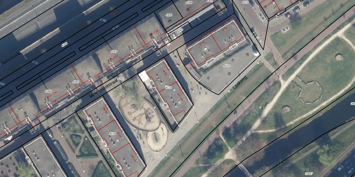Laakweg 155 is gelegen op kadastraal perceel GVH21AD4119. Deze kadastrale aanduiding is uniek en wordt gebruikt door het Kadaster om eigendomsrechten en andere zakelijke rechten vast te leggen. Het perceel maakt onderdeel uit van de kadastrale gemeente 's-Gravenhage.
