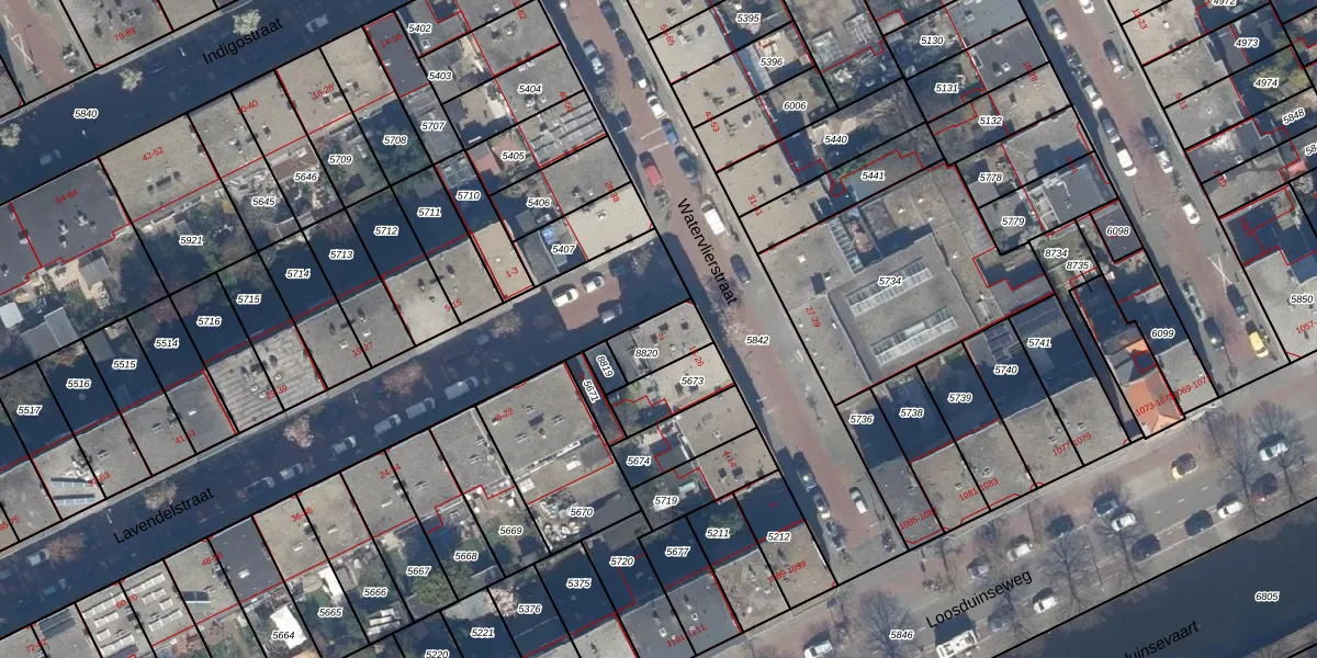Het adres ligt op het perceel GVH29-AM-8820, dat zich in de kadastrale gemeente 's-Gravenhage bevindt. Het perceel is 107 m² groot. Dat is kleiner dan de gemiddelde perceeloppervlakte in 's-Gravenhage, dat op 303,34 m² ligt. De grootste perceeloppervlakte in de kadastrale gemeente is 3,0 ha. De kleinste oppervlakte bedraagt 0 m². Op het perceel liggen in totaal 4 adressen. De huidige grenzen van het perceel zijn digitaal in de Basisregistratie Kadaster (BRK) geregistreerd op 22-06-2023.