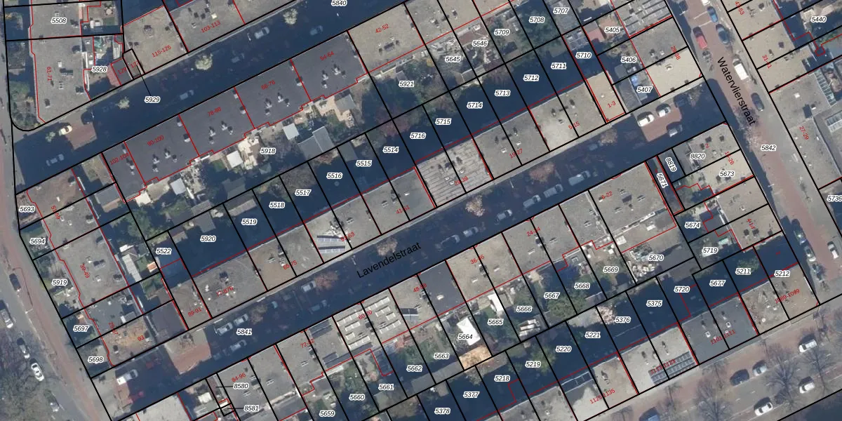 Lavendelstraat 43 is gelegen op kadastraal perceel GVH29AM5514. Deze kadastrale aanduiding is uniek en wordt gebruikt door het Kadaster om eigendomsrechten en andere zakelijke rechten vast te leggen. Het perceel maakt onderdeel uit van de kadastrale gemeente 's-Gravenhage.