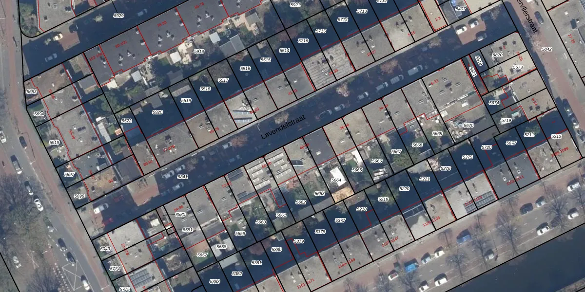 Lavendelstraat 54 is gelegen op kadastraal perceel GVH29AM5663. Deze kadastrale aanduiding is uniek en wordt gebruikt door het Kadaster om eigendomsrechten en andere zakelijke rechten vast te leggen. Het perceel maakt onderdeel uit van de kadastrale gemeente 's-Gravenhage.