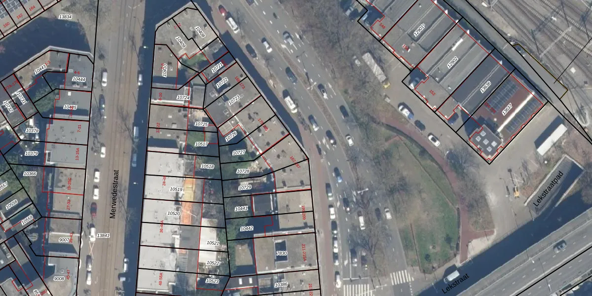Lekstraat 187 is gelegen op kadastraal perceel GVH12R10728. Deze kadastrale aanduiding is uniek en wordt gebruikt door het Kadaster om eigendomsrechten en andere zakelijke rechten vast te leggen. Het perceel maakt onderdeel uit van de kadastrale gemeente 's-Gravenhage.
