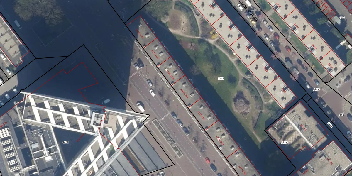Het adres ligt op het perceel GVH37-AW-1413, dat zich in de kadastrale gemeente 's-Gravenhage bevindt. De oppervlakte van het perceel is 6277 m². Dat is groter dan gemiddeld in 's-Gravenhage, waar de gemiddelde perceeloppervlakte op 1320,78 m² ligt. De grootste perceeloppervlakte in de kadastrale gemeente is 12,9 ha. De kleinste oppervlakte bedraagt 0 m². Op het perceel zijn 97 adressen aanwezig. In de Basisregistratie Kadaster (BRK) werden de grenzen van het perceel geregistreerd op 05-01-2011.