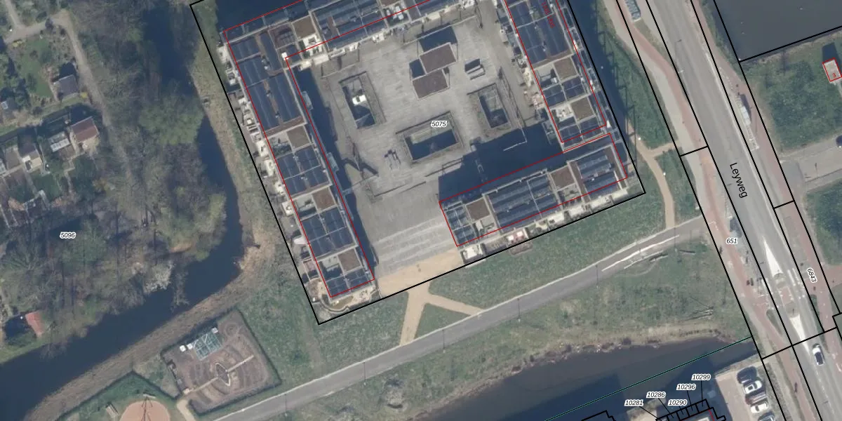 Het perceel waarop Leyweg 1213 staat heeft een oppervlakte van 6835 m². Dit is een zeer groot perceel. De perceeloppervlakte wordt geregistreerd door het Kadaster. Gedetailleerde informatie over de maten van dit perceel kunt u vinden in het rapport Kadastrale kaart met maatvoering van Leyweg 1213.