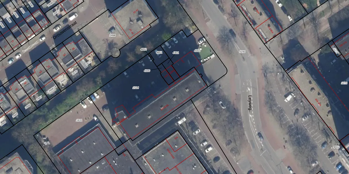 Leyweg 529-H is gelegen op kadastraal perceel GVH37AW1534. Deze kadastrale aanduiding is uniek en wordt gebruikt door het Kadaster om eigendomsrechten en andere zakelijke rechten vast te leggen. Het perceel maakt onderdeel uit van de kadastrale gemeente 's-Gravenhage.