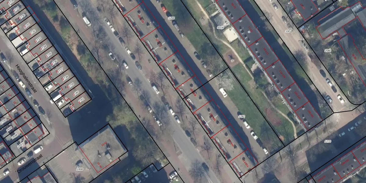 Het perceel waarop het adres ligt is GVH37-AW-1268. De afkorting 'GVH37' staat voor kadastrale gemeente 's-Gravenhage. Het perceel is met 2323 m² relatief groot. Het gemiddelde ligt in de kadastrale gemeente 's-Gravenhage op 1320,78 m². De grootste perceeloppervlakte in de kadastrale gemeente is 12,9 ha. De kleinste oppervlakte bedraagt 0 m². Op het perceel zijn 52 adressen aanwezig. De laatste wijziging in het de Basisregistratie Kadaster (BRK) was op 16-05-2019.