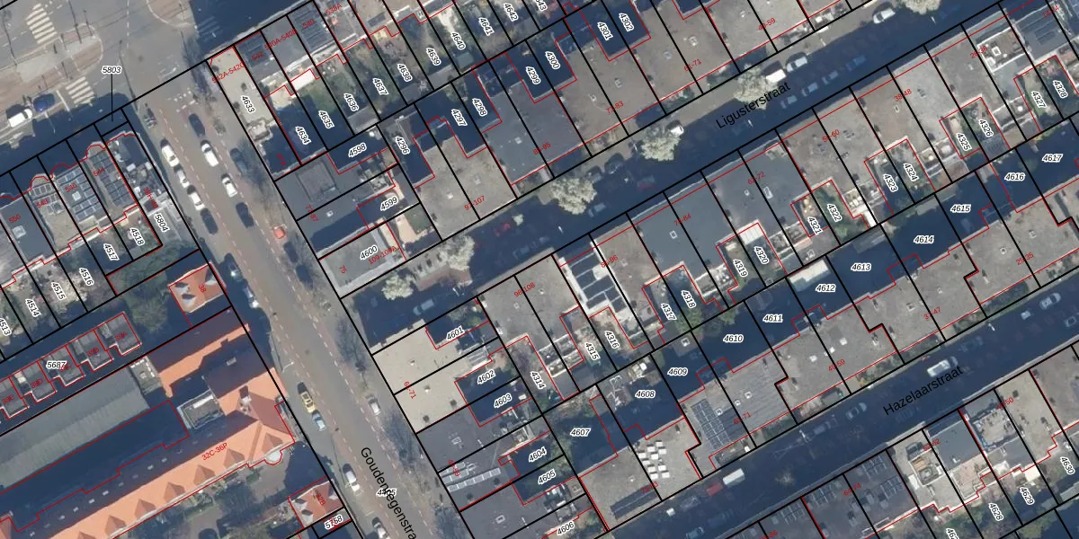 Ligusterstraat 102 is gelegen op kadastraal perceel GVH29AM4315. Deze kadastrale aanduiding is uniek en wordt gebruikt door het Kadaster om eigendomsrechten en andere zakelijke rechten vast te leggen. Het perceel maakt onderdeel uit van de kadastrale gemeente 's-Gravenhage.