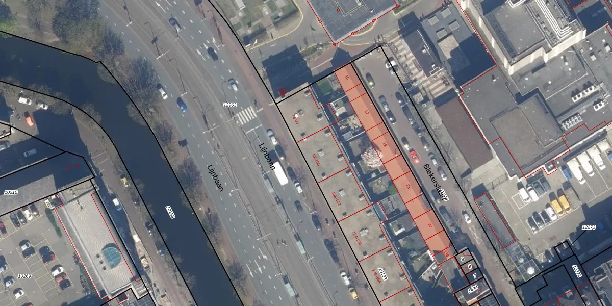 Het perceel waarop Lijnbaan 102 staat heeft een oppervlakte van 2834 m². Dit is een zeer groot perceel. De perceeloppervlakte wordt geregistreerd door het Kadaster. Gedetailleerde informatie over de maten van dit perceel kunt u vinden in het rapport Kadastrale kaart met maatvoering van Lijnbaan 102.