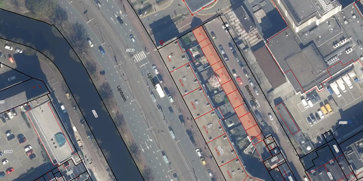 Het perceel waarop Lijnbaan 104 staat heeft een oppervlakte van 2834 m². Dit is een zeer groot perceel. De perceeloppervlakte wordt geregistreerd door het Kadaster. Gedetailleerde informatie over de maten van dit perceel kunt u vinden in het rapport Kadastrale kaart met maatvoering van Lijnbaan 104.