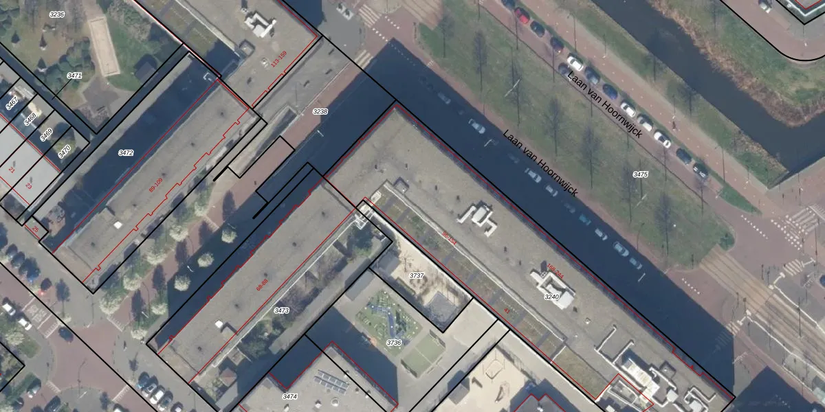 Het perceel waarop het adres ligt is GVH49-BK-3240. De afkorting 'GVH49' staat voor kadastrale gemeente 's-Gravenhage. De oppervlakte van het perceel is 2610 m². Dat is groter dan gemiddeld in 's-Gravenhage, waar de gemiddelde perceeloppervlakte op 1212,81 m² ligt. Het kleinste perceel in de kadastrale gemeente is 1 m² groot. De grootste perceeloppervlakte is 11,5 ha. Er zijn 39 adressen aanwezig op het perceel. In de Basisregistratie Kadaster (BRK) werden de grenzen van het perceel geregistreerd op 27-07-2015.