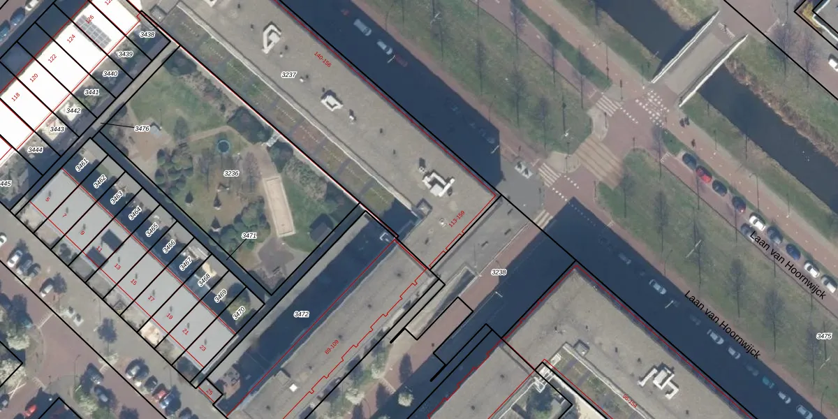 Het adres is gelegen op perceel 3237 in de sectie BK en de kadastrale gemeente 's-Gravenhage. De kadastrale aanduiding is aldus GVH49-BK-3237. De gemiddelde perceeloppervlakte in de kadastrale gemeente 's-Gravenhage is 1212,81 m². Dit perceel is met zijn 2594 m² dus groter dan gemiddeld. De grootste perceeloppervlakte in de kadastrale gemeente is 11,5 ha. De kleinste oppervlakte bedraagt 1 m². Op het perceel zijn 47 adressen aanwezig. De huidige grenzen van het perceel zijn digitaal in de Basisregistratie Kadaster (BRK) geregistreerd op 03-05-2011.