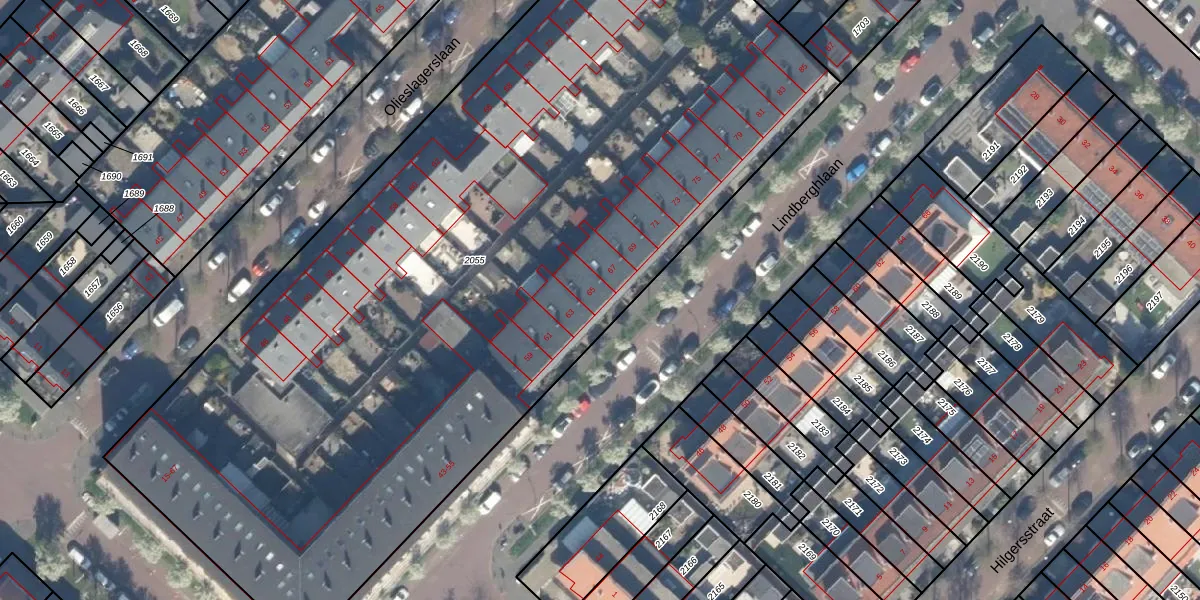Het perceel waarop Lindberghlaan 65 staat heeft een oppervlakte van 5970 m². Dit is een zeer groot perceel. De perceeloppervlakte wordt geregistreerd door het Kadaster. Gedetailleerde informatie over de maten van dit perceel kunt u vinden in het rapport Kadastrale kaart met maatvoering van Lindberghlaan 65.