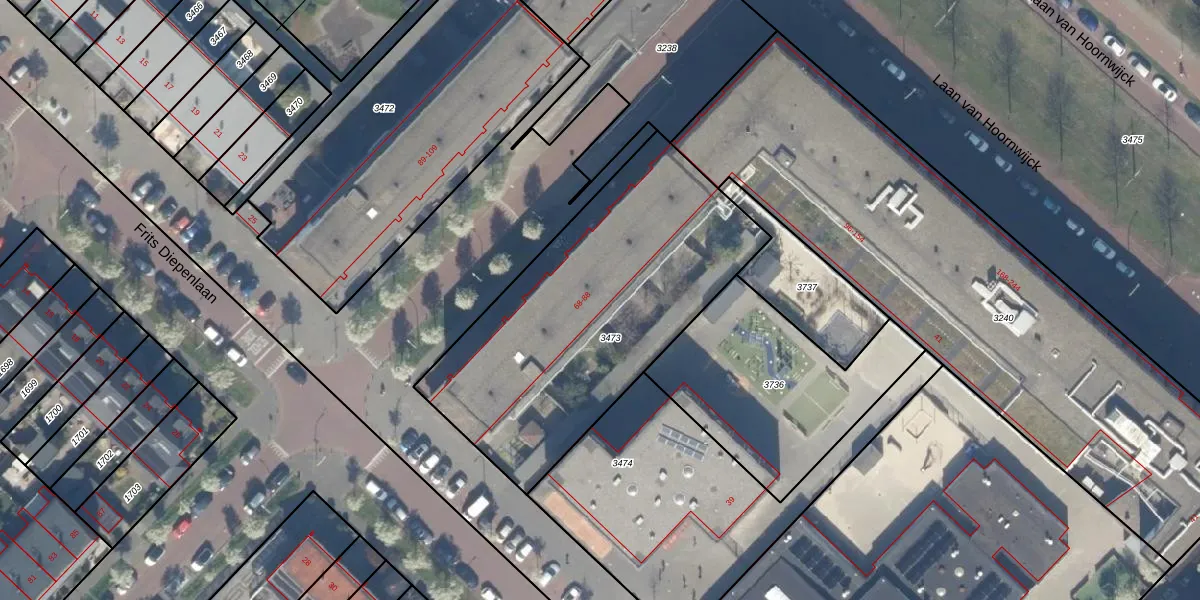 Het perceel waarop het adres ligt is GVH49-BK-3473. De afkorting 'GVH49' staat voor kadastrale gemeente 's-Gravenhage. Het perceel is met 1542 m² relatief groot. Het gemiddelde ligt in de kadastrale gemeente 's-Gravenhage op 1212,81 m². De grootste perceeloppervlakte in de kadastrale gemeente is 11,5 ha. De kleinste oppervlakte bedraagt 1 m². Op het perceel liggen in totaal 21 adressen. De laatste wijziging in het de Basisregistratie Kadaster (BRK) was op 15-03-2018.