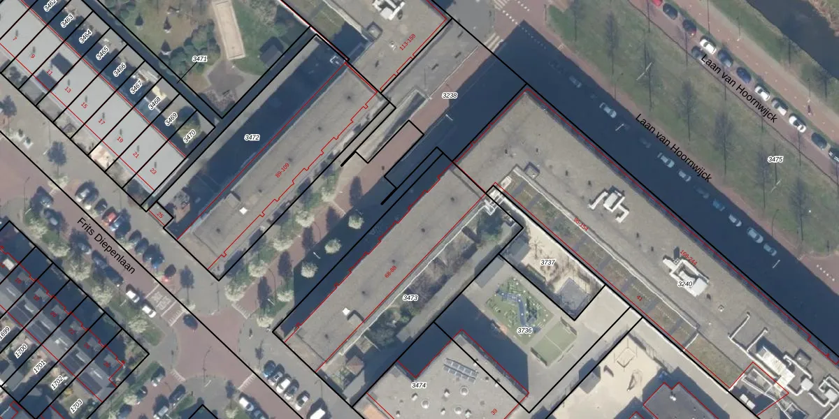 Het adres is gelegen op perceel 3473 in de sectie BK en de kadastrale gemeente 's-Gravenhage. De kadastrale aanduiding is aldus GVH49-BK-3473. De oppervlakte van het perceel is 1542 m². Dat is groter dan gemiddeld in 's-Gravenhage, waar de gemiddelde perceeloppervlakte op 1212,81 m² ligt. Het grootste perceel in de kadastrale gemeente is 11,5 ha. Het kleinste perceel heeft een oppervlakte van 1 m². Er zijn 21 adressen aanwezig op het perceel. De laatste wijziging in het de Basisregistratie Kadaster (BRK) was op 15-03-2018.