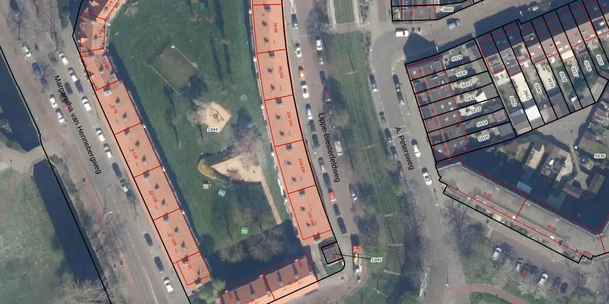 Lippe-Biesterfeldweg 118 is gelegen op kadastraal perceel LDN03M1944. Deze kadastrale aanduiding is uniek en wordt gebruikt door het Kadaster om eigendomsrechten en andere zakelijke rechten vast te leggen. Het perceel maakt onderdeel uit van de kadastrale gemeente Loosduinen.