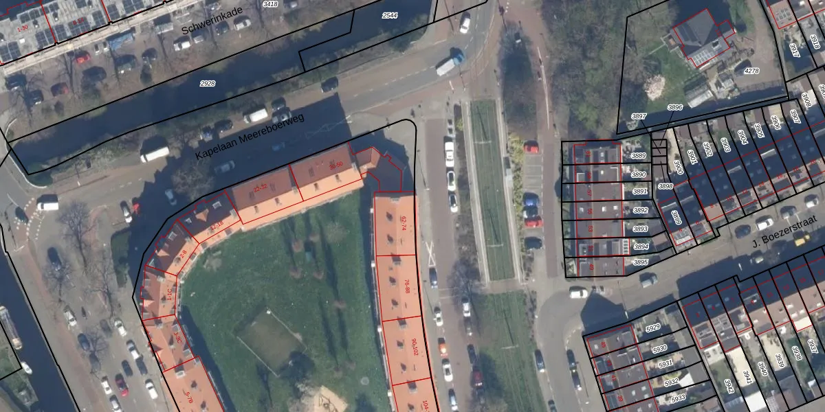Het perceel waarop het adres ligt is LDN03-M-1944. De afkorting 'LDN03' staat voor kadastrale gemeente Loosduinen. Het perceel is met 7373 m² relatief groot. Het gemiddelde ligt in de kadastrale gemeente Loosduinen op 1427,84 m². Het kleinste perceel in de kadastrale gemeente is 0 m² groot. De grootste perceeloppervlakte is 4,61 km². Er zijn 106 adressen aanwezig op het perceel. In de Basisregistratie Kadaster (BRK) werden de grenzen van het perceel geregistreerd op 26-01-2005.