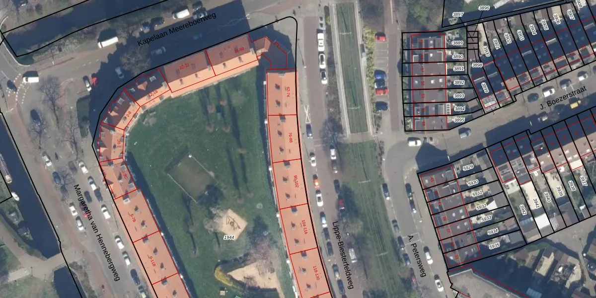 Lippe-Biesterfeldweg 84 is gelegen op kadastraal perceel LDN03M1944. Deze kadastrale aanduiding is uniek en wordt gebruikt door het Kadaster om eigendomsrechten en andere zakelijke rechten vast te leggen. Het perceel maakt onderdeel uit van de kadastrale gemeente Loosduinen.